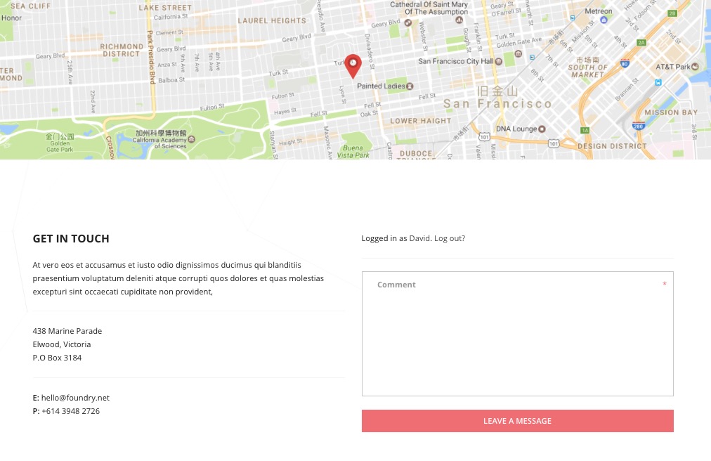 Contact Page integrated with Google Maps that allows you to customize the Google Map styles.