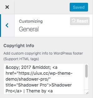 Theme gives you control over the overall style of Footer layout and copyright information.