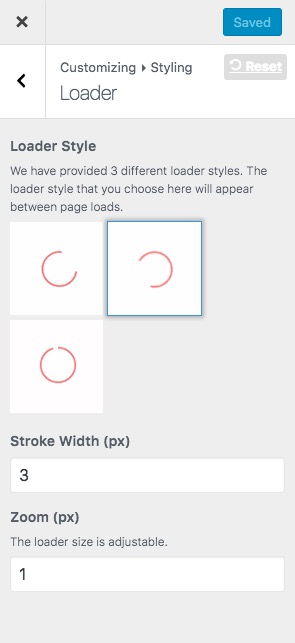 We have provided 3 different loader styles. The loader style that you choose here will appear between page loads.