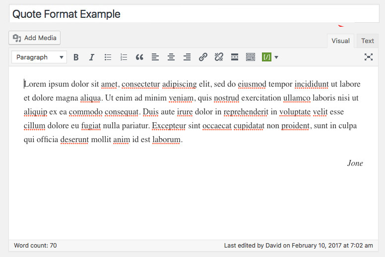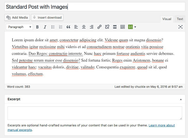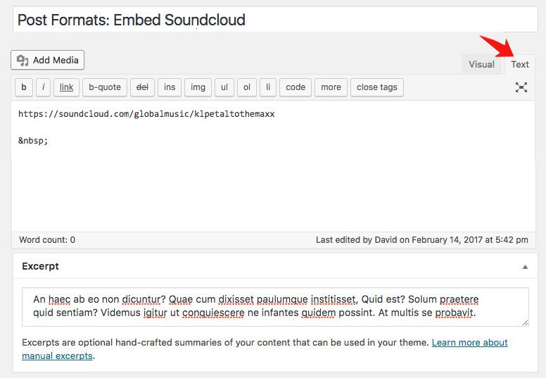 Dashboard » Posts » Add New.Categories, Format, Excerpt, Tags and Featured Image.Sometimes, you might not be happy with an automatically generated excerpt or you just want to add your own custom excerpt. In that case there is an option integrated in WordPress to enable an additional field to enter custom excerpts.