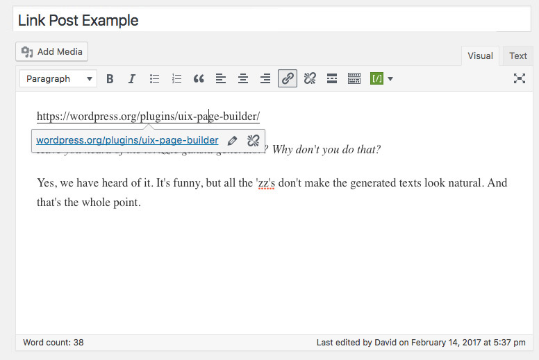 Go to your WordPress admin panel, edit or create a new post (or page). You’ll see our tiny little button in the toolbar, preceded by a separator: