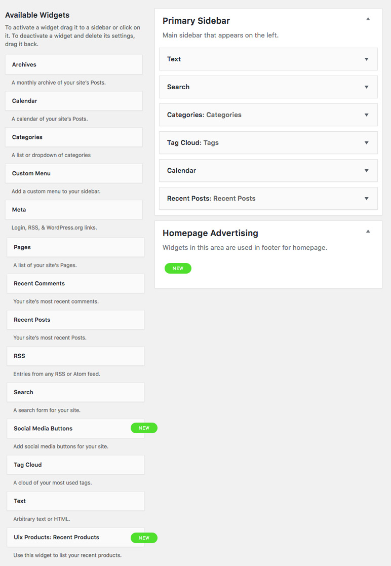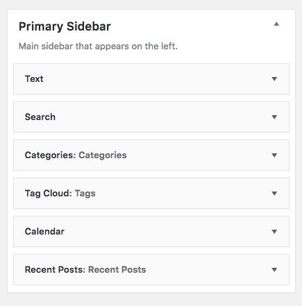 Dashboard » Appearance » Widgets.If you change WordPress Themes, the Widgets will return to the left side of the page in the Widget Archives or Available Widgets list. You may need to add them again and rearrangement depending upon the Theme's ability to preserve other Theme's Widgets.