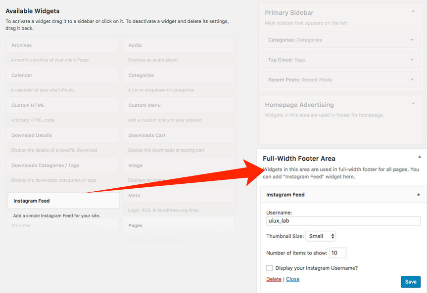 FIX: Fixed the text-domain incorrectly causing errors that could not be displayed correctly in other languages.* NEW: Added instagram footer widget. Simply go to Appearance » Widgets in your WordPress admin area. Next drag & drop the "Instagram Feed" widget to the "Full-width Footer Area".