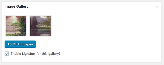 A field named Select Gallery post format will appear in the Image Gallery section of the page. This format features an image gallery slider. In order for it to work, you need to click "Add/Edit Images" button to add a gallery in the Image Gallery section of your page, and here you can upload and add your gallery images.